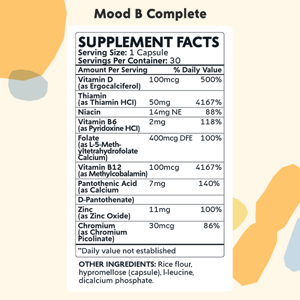 Methylated B vitamins can give you a great boost of energy, so try taking them in the morning with breakfast. Mood B Complete should be taken daily to stabilize your mood over time.