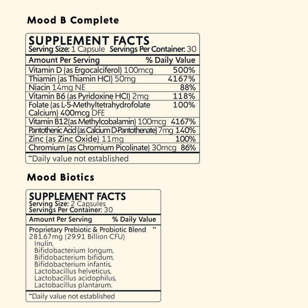 Support serotonin synthesis with methylated b-vitamins and 6 research-based strains of probiotics & prebiotics proven to support serotonin production.