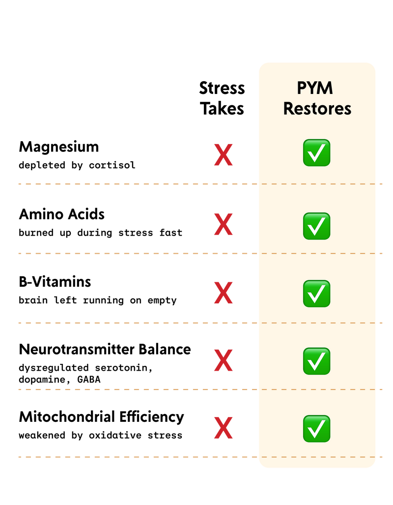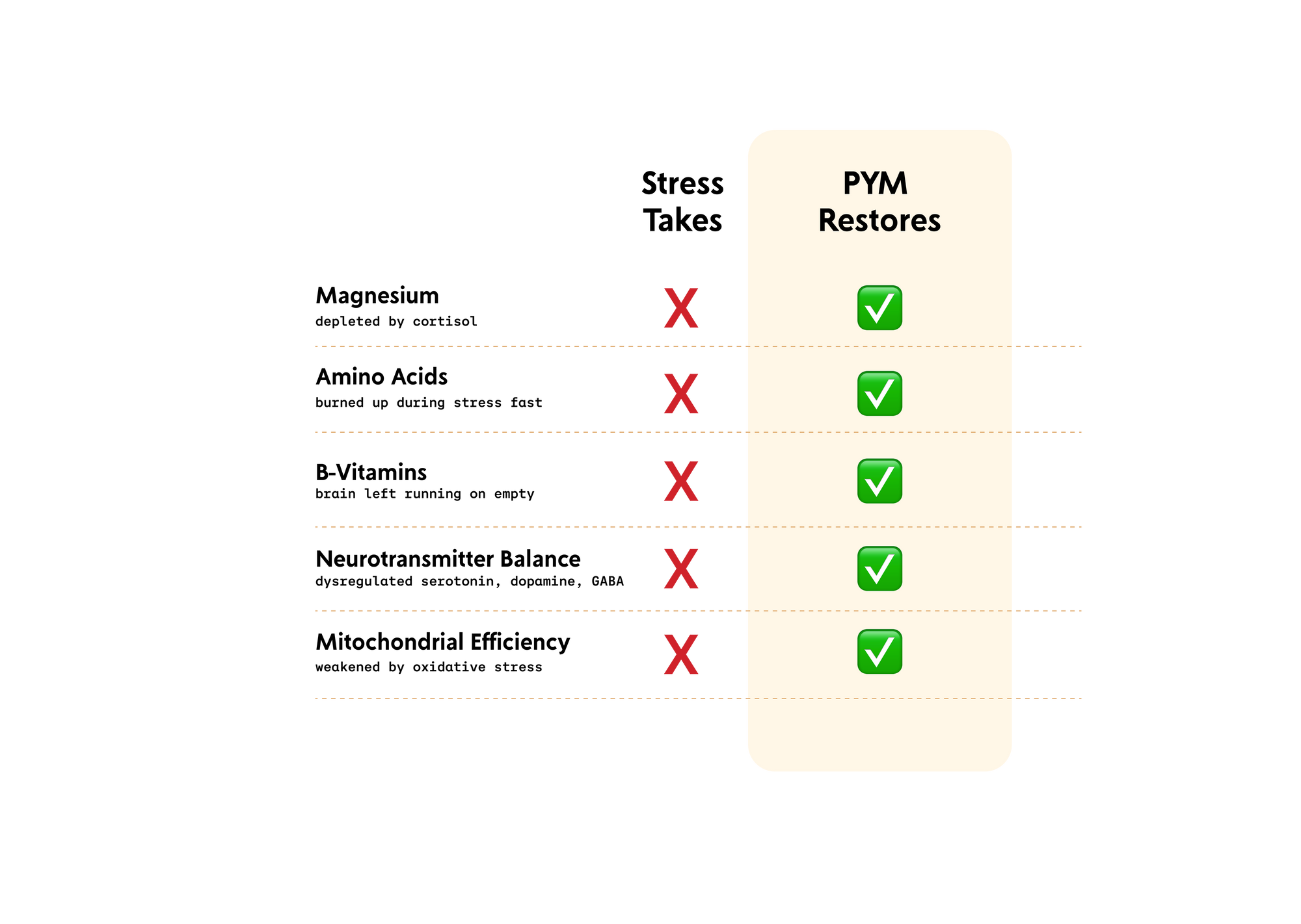Try PYM for 90 days, and if you don’t feel a noticeable improvement in your stress, we’ll refund your purchase, no questions asked.